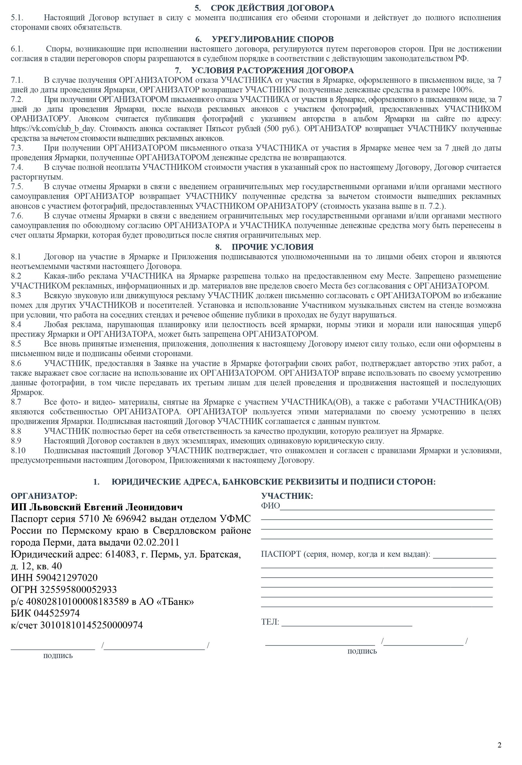Оплата участия вносится в срок до 22 февраля на счет, указанный в договоре - это карта Сбербанка самозанятого Кодоловой Анны Александровны (организатор ярмарки).